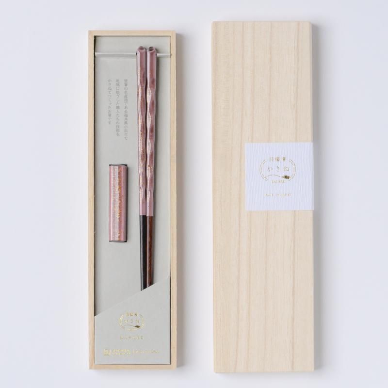 み空色・撫子色・錫色・麹色・紅色の全5色の中から、撫子色(ピンク)のお箸と、同じ色の箸置きをセットした桐箱入りのギフトです。
