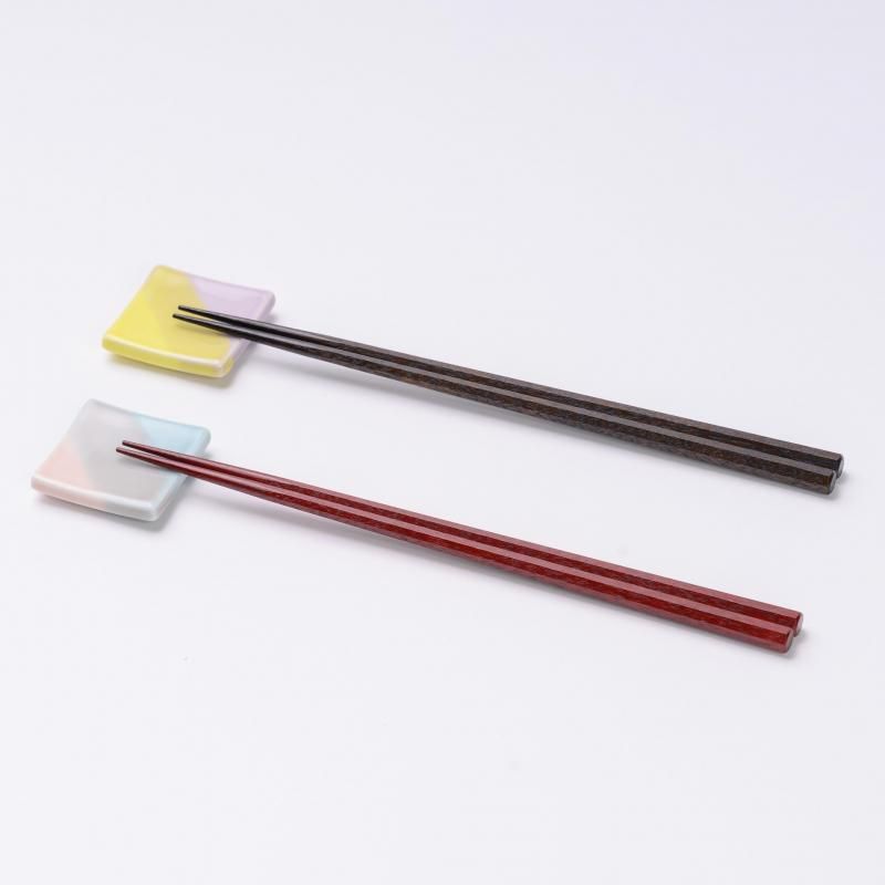 シンプルな若狭木箸にぴったりな、美濃焼きの箸置き(二ツ釉掛)をセットにしました。